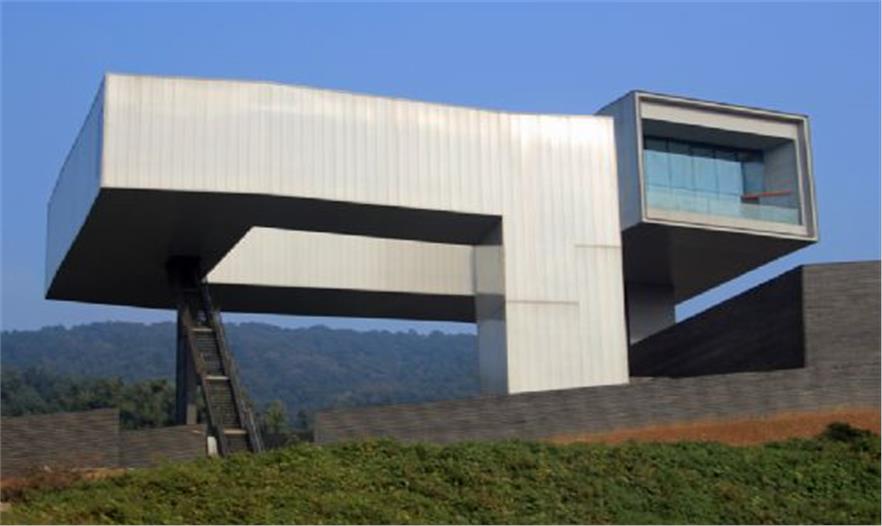 一個懸吊在高空的長廊由兩根巨大的支柱支撐著,它們被順時針旋轉的曲折樓梯包裹,這條樓梯直接通道建筑最高處,為參觀者提供了一個俯瞰南京市全景的完美觀景點。這座博物館作為周圍城市與自然環(huán)境的視覺軸心,其線性抬升的體量創(chuàng)造了一個相對私密的展覽空間,將參觀者的注意力凝聚到展品上。