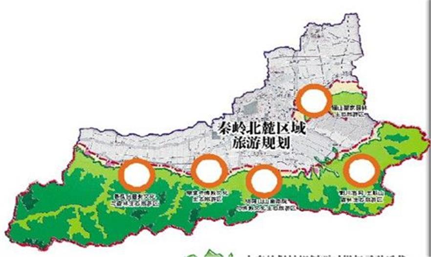 “六片區(qū)”:即太白山旅游觀光區(qū)、樓觀臺(tái)旅游度假區(qū)、草堂科技產(chǎn)業(yè)基地、終南山文化產(chǎn)業(yè)區(qū)、湯峪溫泉旅游度假區(qū)、臨潼國(guó)際旅游度假區(qū)。