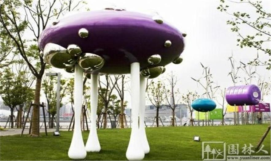 這是Taranta Creations工作室在上海白蓮涇世博公園會園區(qū)的裝置作品。這一系列裝置沿著黃埔河岸布置,如今其中一部分終于完成。這反映了上海后世博公園中的多樣性。白蓮涇公園黃浦江沿岸,是前世博園區(qū)浦東部分的北部區(qū)域。2010上海世博會結(jié)束后,這里進入后世博時代,世博園區(qū)的很多建筑被拆卸,但是這里確實永久保留區(qū),因此在這里的線狀綠帶中布置了一系列裝置藝術。Taranta Creations工作室也參與其中,并設計了這些藝術裝置。
