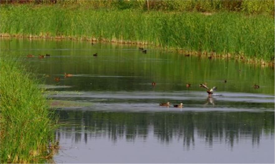 大面積生長(zhǎng)的蘆葦是這里的標(biāo)志性特征。人們?cè)诖丝梢灶I(lǐng)略到京郊平原獨(dú)有的荒野景觀。夏天,濕地的蘆葦可以長(zhǎng)到2米多高。微風(fēng)吹拂,蘆葦蕩此起彼伏,猶如浩瀚的‘綠海’,景色頗為壯觀。