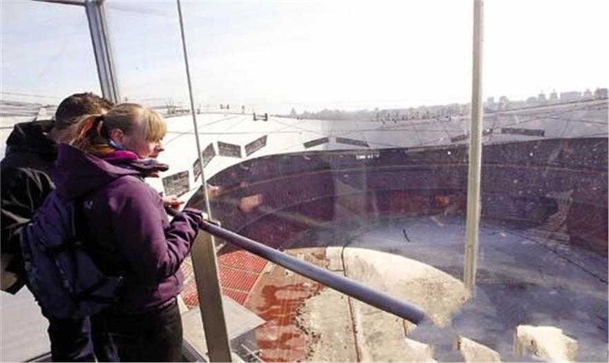 “鳥巢空中走廊自春節(jié)黃金周試運(yùn)營(yíng)以來(lái),由于觀賞視角獨(dú)特,很受游客歡迎。目前客流占鳥巢觀光總客流的三分之一?!睋?jù)國(guó)家體育場(chǎng)鳥巢副總經(jīng)理?xiàng)畛墙榻B,在“空中走廊”中,游客可以了解到鳥巢的科技元素,包括雨水收集利用系統(tǒng)、火炬搬家的方式等。