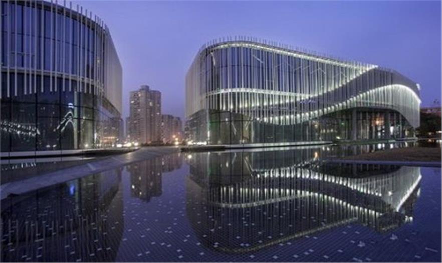 建筑的外墻采用的白色陶瓷作為表面材質(zhì)。白天,陽光照射在這些白色的建筑表面,產(chǎn)生千變?nèi)f化的反射效果;晚上,各種微妙的燈光效果與動態(tài)景觀照明與建筑一起創(chuàng)建了一個夢幻般的氣氛。