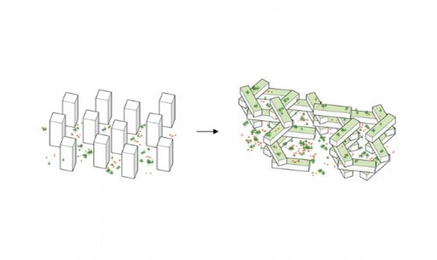 奧雷•舍人設計的翠城新景創(chuàng)造了一個在都市社區(qū)中演繹現(xiàn)代生活,個人居住和共享空間相聯(lián)交織的空間網(wǎng)絡。翠城新景的設計沒有延續(xù)高密度城市住宅傳統(tǒng)的孤立、垂直的塔樓模式,而將塔樓的垂直孤立形態(tài)轉(zhuǎn)換為水平相通形態(tài),重新強調(diào)社區(qū)概念在當今社會中的中心地位。