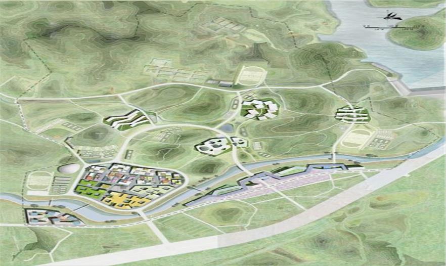位于校區(qū)中心的圖書館立面采用了略微彎曲的弧形,對(duì)外部環(huán)境形成謙遜的姿態(tài)。師生每日往返于教學(xué)區(qū)與生活區(qū)時(shí),會(huì)從不同方向途徑此圖書館。