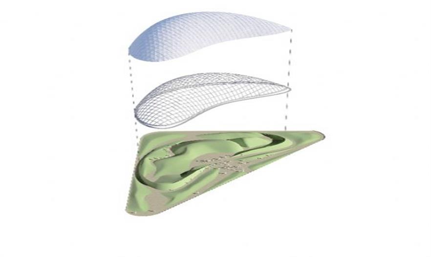 約翰-麥卡蘭建筑事務(wù)所的總經(jīng)理托尼·斯基珀(Tony Skipper)說,這個設(shè)計方案的特點是,帶格柵的屋頂罩在土丘上面,這是該事務(wù)所設(shè)計倫敦的“國王十字車站”(King’s Cross station.)的建筑結(jié)構(gòu)方式的進(jìn)一步發(fā)展。