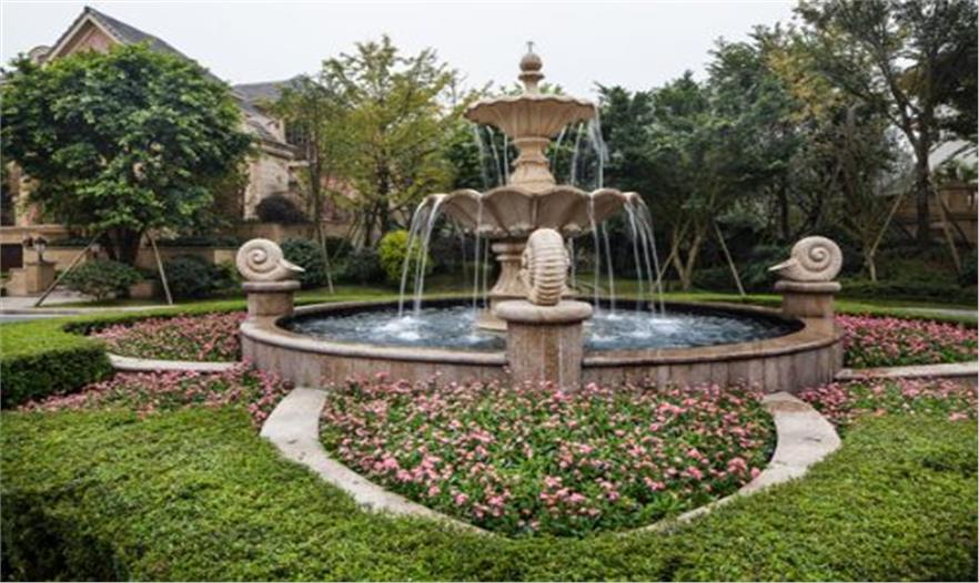 區(qū)域內(nèi)規(guī)劃有兩條景觀大道,分別是貫穿東西和貫穿南北方向的兩條主干道。南北方向的景觀大道起著聯(lián)系社區(qū)與酒店商業(yè)區(qū)的作用,東西方向的景觀大道起著聯(lián)系市政道路的作用。設(shè)計團隊考慮到兩條景觀大道作為項目的主要交通線路,人車流量相對較大,故采用具有一定形象展示功能的道路景觀,通過植物造景和設(shè)置景觀小品來塑造氛圍恢宏的景觀大道。