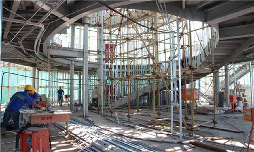 二層入口處配有動畫演示區(qū)域,觀看演示動畫之后,參觀者便被帶進模型室,模型室內(nèi)光源有限,目的在于突出展示未來商場模型。參觀二層之后,站在第二層的戶外露臺便可以瞭望遠處正在施工建設中的商場,這也是連接“現(xiàn)在”與“未來”的節(jié)點。