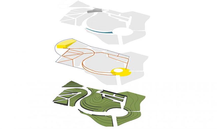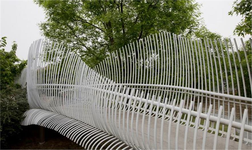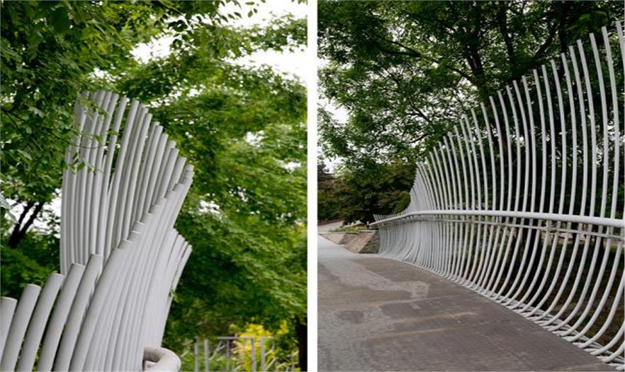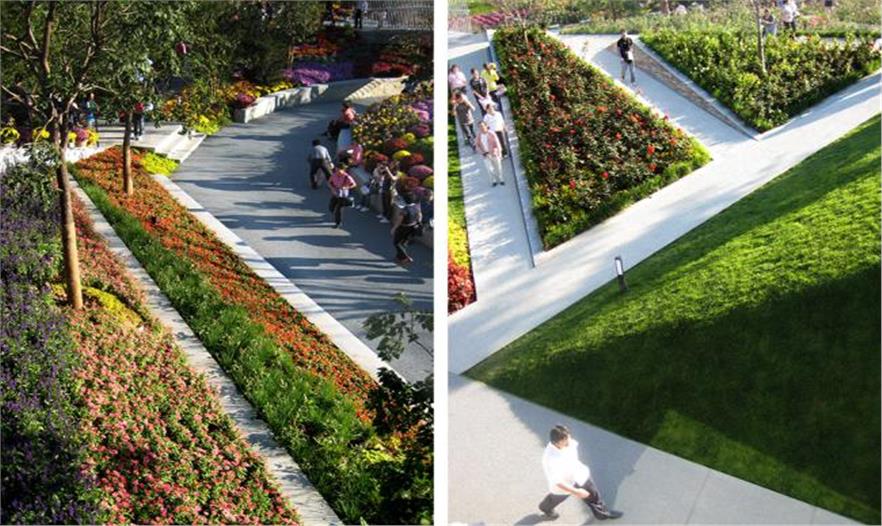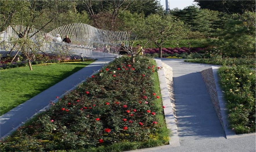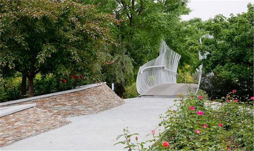 來(lái)自景觀建筑師: 京華園主題為“京華雙嬌,古韻新妝”,突出展現(xiàn)北京市市花——月季和菊花。該園分為入口雕塑區(qū)、月季花架區(qū)、巖石園、月季臺(tái)地區(qū)和建筑區(qū)等。園內(nèi)各個(gè)區(qū)域的設(shè)計(jì)構(gòu)思都著重于對(duì)北京市花“菊花”和“月季”的充分表達(dá),并始終滲透到各個(gè)景觀之中,形成鮮明的北京特色,是月季和菊花在京城廣泛種植的集中體現(xiàn)。抽象的菊花形的鋼橋,以曲線的柔美, 營(yíng)造似穿行于花瓣中的意境,菊花形流水將菊花弧線的自然美與水流的靈動(dòng)巧妙地結(jié)合在一起。