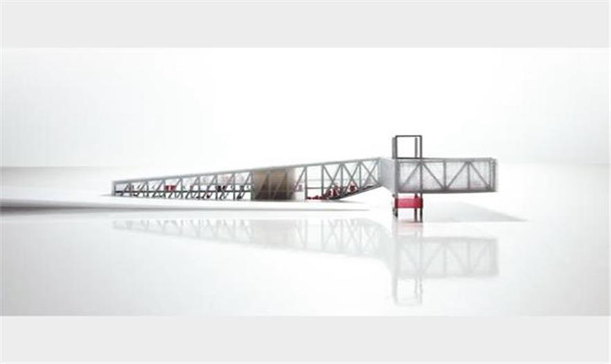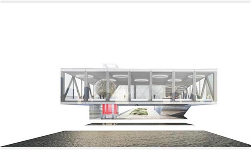 大都會建筑事務(wù)所將這個項目構(gòu)思為一個“空間電樞”(spatial armature),懸浮于一個廣場之上,并且與斜坡下面的另一個展覽空間相連。