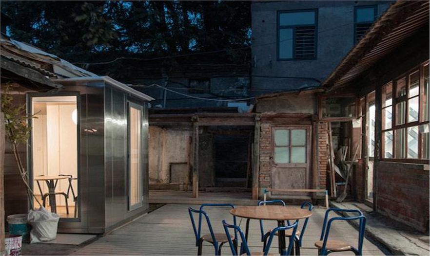 張軻是標(biāo)準(zhǔn)營造建筑工作室的創(chuàng)始人。他在楊梅竹斜街 53 號做的「微胡同」項目,在去年北京國際設(shè)計周期間展出,5 棟互相連接又保持獨(dú)立的小木屋在一個 30 平米的空間中得以展現(xiàn),中間還有一個天井,目的就是探索在傳統(tǒng)胡同局限的空間中創(chuàng)造可供多人居住的超小型社會住宅的可能性。而在楊梅竹斜街北面的茶兒胡同 8 號院,張軻的團(tuán)隊通過植入微型藝術(shù)館和圖書館的空間和功能,做了一個「微雜院」,成為北京舊城胡同與四合院有機(jī)更新的另一種形態(tài)。