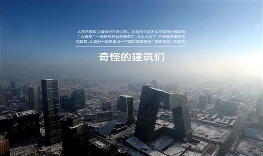 人民日?qǐng)?bào)政文微信近日發(fā)文稱:“北京市今后不太可能再出現(xiàn)如同‘大褲衩’一樣奇形怪狀的建筑了。習(xí)大大說了,不要搞奇奇怪怪的建筑。”讓我們一起來盤點(diǎn)一下國內(nèi)都有哪些“奇形怪狀”的建筑。圖為2013年3月21日,俯瞰北京CBD。供圖:CFP