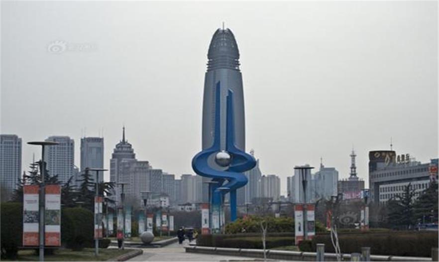 2014年02月17日,山東省濟(jì)南市, 在建設(shè)中的濟(jì)南第一高樓,常因外形“怪異”遭人調(diào)侃。