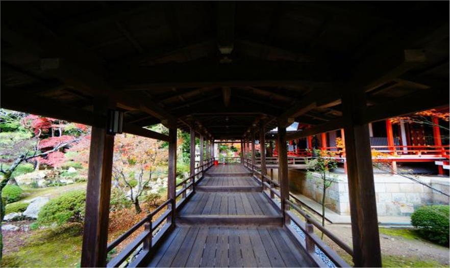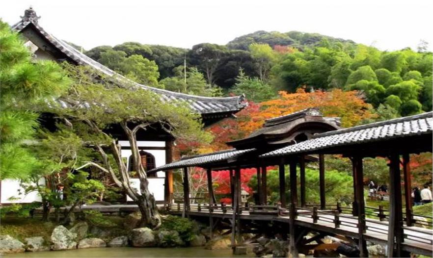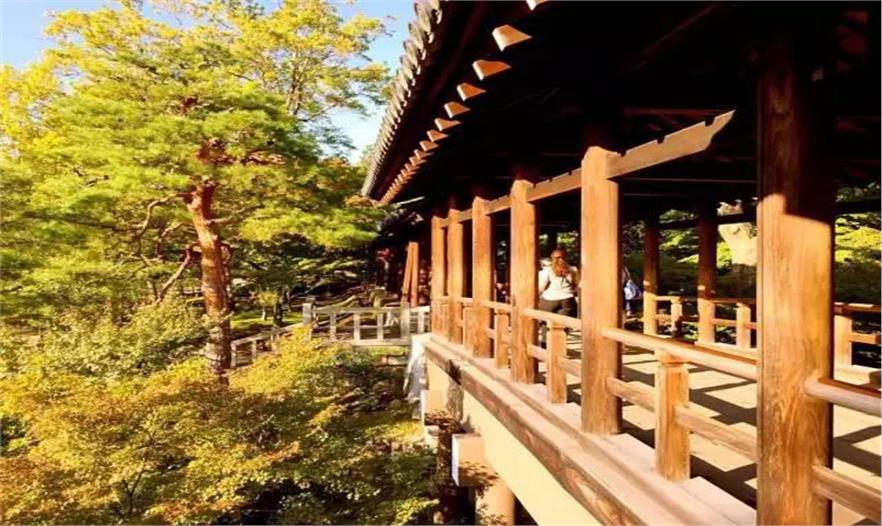 東福寺體現(xiàn)了禪宗建筑風(fēng)格,寺內(nèi)擁有日本最古老的山門(國(guó)寶),還有天井龍圖彩繪的本堂以及國(guó)家重要文物的東司(便所)等。寺內(nèi)的東四南北建有風(fēng)格迥異的方丈庭園,其中以北庭最為著名。寺內(nèi)的洗玉澗通天橋,每到秋季,便成為京都觀賞紅葉的最佳觀景地。
