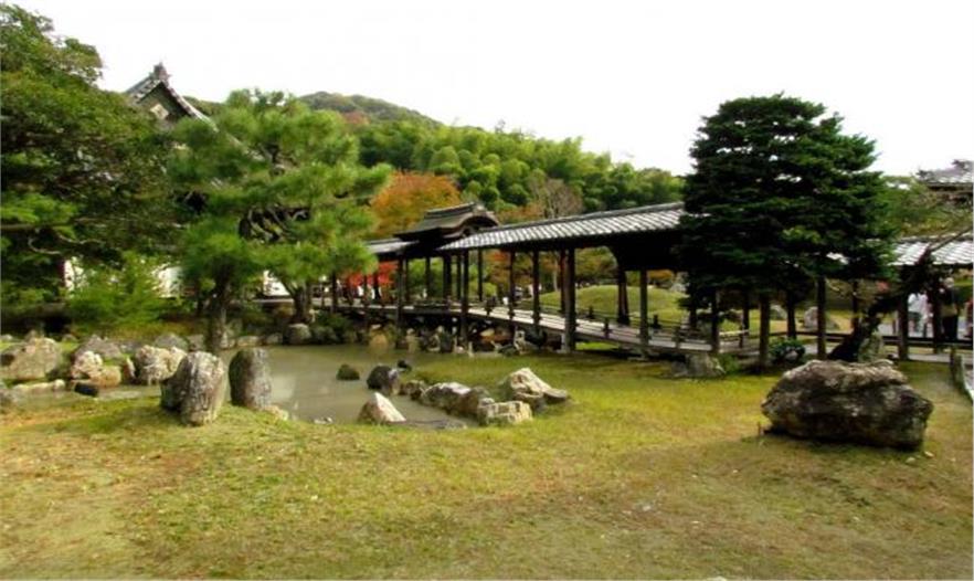 高臺(tái)寺雖屢遭火災(zāi),但現(xiàn)存建筑開(kāi)山堂、靈屋、傘亭、時(shí)雨亭、觀月臺(tái)等國(guó)家重要文物,蓬萊山水庭園等國(guó)家重要名勝古跡,以及寺院內(nèi)的翠竹、徘櫻、晚?xiàng)鞯燃丫辰^景卻久負(fù)盛名。寺院不大卻匠心獨(dú)運(yùn)。當(dāng)年負(fù)責(zé)設(shè)計(jì)施工的小堀遠(yuǎn)州(1579—1647年)是日本歷史上享有盛譽(yù)的園藝建筑巨匠。
