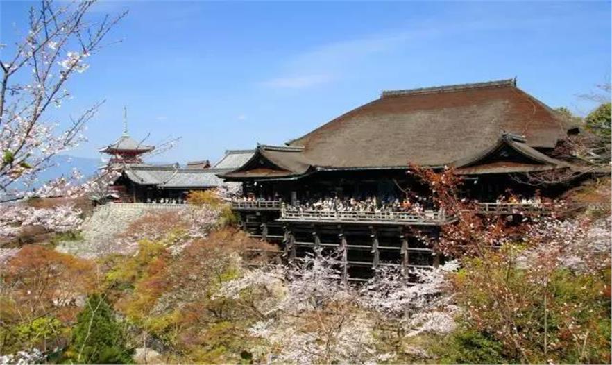 清水寺為公元798年(延歷17年)由延鎮(zhèn)上人所建造,為平安時(shí)代之代表建筑物,后來(lái)曾多次遭大火所焚毀,現(xiàn)今所見(jiàn)為1633年德川家光依原來(lái)建筑手法重建,與金閣寺,二條城并列為京都三大名勝,也是著名的賞楓及賞櫻景點(diǎn)。