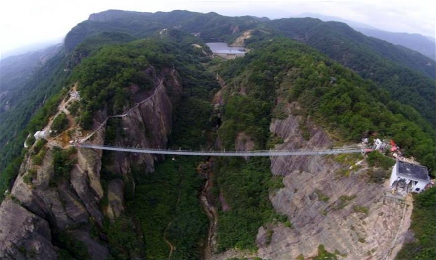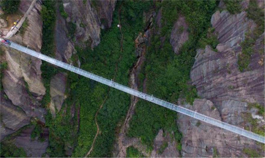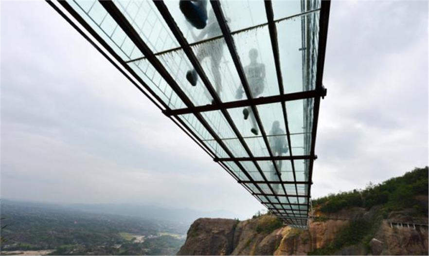 中國湖南省向游客開放了一座玻璃浮橋,又名“好漢橋”。這個300米長的橋橫跨石牛寨國家地質公園的2座懸崖,高180米,為游客帶來刺激體驗。據(jù)報道稱,每塊24毫米厚的玻璃板比普通的玻璃堅固25倍。