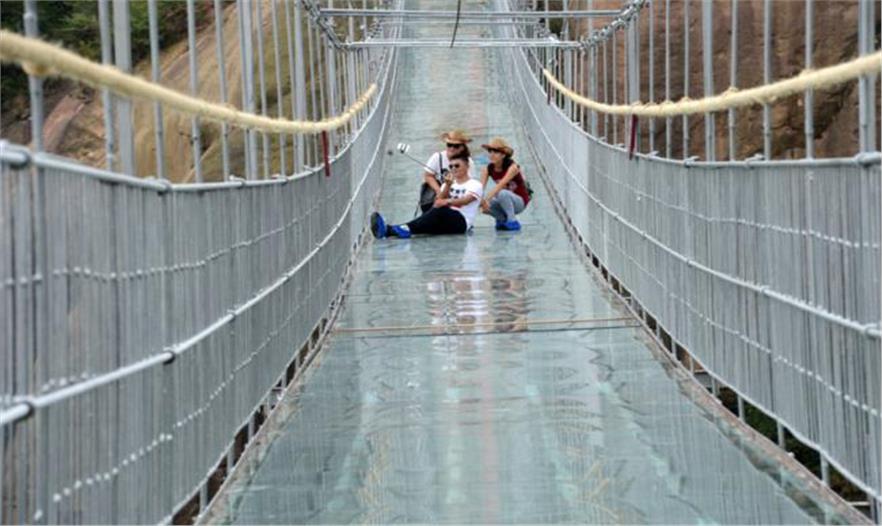 一位建筑工人表示:“我們建造的這座橋很堅固,隨游客怎么蹦跳。況且玻璃橋下的鋼結構很密實,即使玻璃開裂了,游客也不可能會摔下去。”