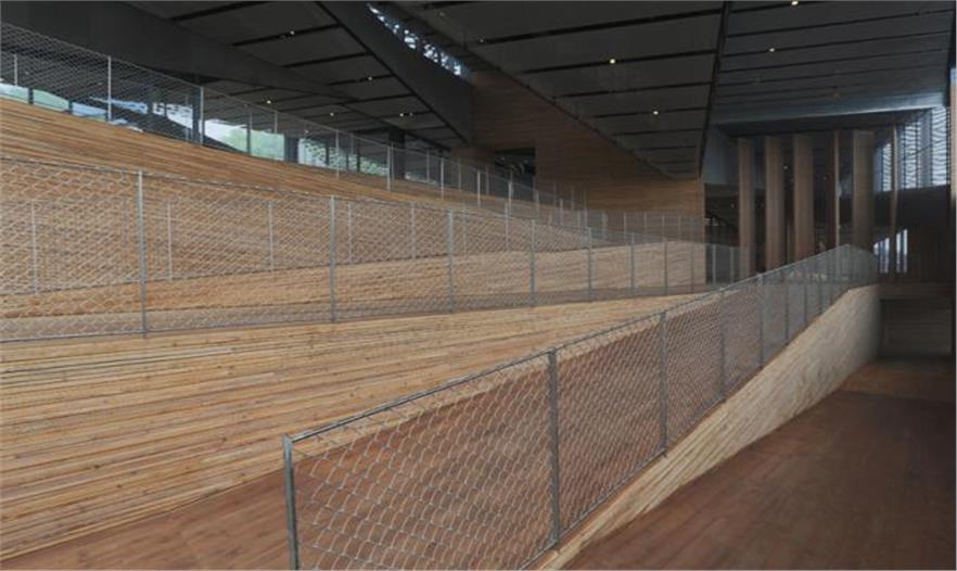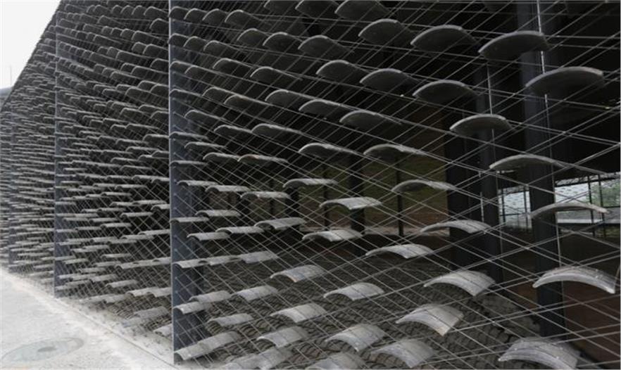 由知名日本建筑師隈研吾設計的民藝博物館近期在杭州開館。這個為中國美院建造的場館致力于保護并復活國家藝術工藝,將在教育領域扮演核心角色。秉持隈研吾 “讓建筑消失” 的設計理念,讓建筑俯伏于地面,不侵占周圍的綠色環(huán)境。為了將建筑隱身于景觀中,民藝館使用廢棄的瓦片作為屋頂和幕墻,它們由不銹鋼鐵絲相連。這不僅構成外部的視覺效果,也為內部創(chuàng)造了戲劇性的光影展示。這是隈研吾在亞洲設計的最大的單體建筑,也是他自認為最為滿意的作品。因為建筑所在的地形充分滿足了他‘讓建筑消失’的理念,所以他幾乎都沒收設計費。在建造過程中,他多次來現(xiàn)場查看進程,并提出部分修改意見,這足以看出他對這件作品的重視程度。民藝館的開幕式他也親自前來參加。