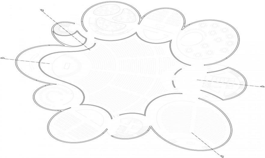 大小不一的蛋形體量為這座建筑提供了獨(dú)特的造型,成為這一地區(qū)的地標(biāo);另一方面削減了建筑的體量,使它更好的融入環(huán)境,從而讓這座建筑既具紀(jì)念性又很親切。建筑充分利用地形順勢(shì)而建,一半在地面上一半在湖上,既可以從東側(cè)的陸上進(jìn)入,也可沿著西側(cè)的湖面進(jìn)入。當(dāng)行人從西側(cè)的橋上經(jīng)過(guò),或者沿著西南側(cè)的高速公路向東行的時(shí)候,這座新建筑就成為整個(gè)景觀的一部分。在原有向北延伸的綠地上,新建筑的出現(xiàn)更添一抹亮色。