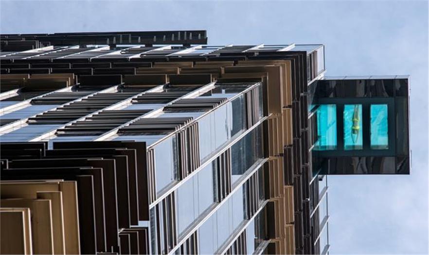 這個(gè)游泳池向屋頂邊緣外突出3米,而且人們能仰頭透過(guò)部分玻璃底看到游泳者,成為街道上的一道風(fēng)景。當(dāng)人們游泳的時(shí)候,還能看到香港周圍的山景,愜意舒適。