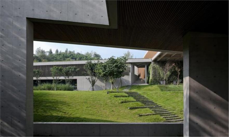 我們希望通過這一系列在頂板和墻體上的洞口、窗口、架空、回廊弱化建筑內(nèi)外的邊界,使整體空間與天空、山景、樹木、陽(yáng)光和風(fēng)相匯交融,最終創(chuàng)造一種人工與自然之間生機(jī)勃勃的共生關(guān)系。