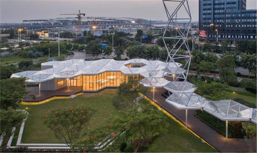 曾經(jīng)看過一個(gè)說法,房地產(chǎn)大約有 90% 甚至更多的銷售最終是在項(xiàng)目現(xiàn)場發(fā)生的,我實(shí)際想說的是,難怪房地產(chǎn)公司都會(huì)特別強(qiáng)調(diào)售樓部的環(huán)境。 在很多城市,萬科都建有品牌展示中心,其實(shí)它說白了就是售樓處,很多建筑師都曾為萬科做過售樓處設(shè)計(jì),在這些設(shè)計(jì)師眼中,這里不僅僅是一個(gè)銷售場所,也是地產(chǎn)商的一塊廣告招牌。 我們曾介紹過直向建筑在營口鲅魚圈為萬科設(shè)計(jì)的售樓處,而包括法國設(shè)計(jì)師 Thomas Dariel 、三磊設(shè)計(jì)、Tsushima 設(shè)計(jì)事務(wù)所以及 ENJOY 設(shè)計(jì)機(jī)構(gòu)等,都曾操刀設(shè)計(jì)過萬科在各地的售樓處。 但我們今天要說的位于廣州的這座 HEX-SYS 六邊建筑體系,表達(dá)的卻是建筑師對售樓處這一特殊建筑類型的一種全新態(tài)度,“它來源于對中國近幾十年來建造熱潮的回應(yīng),特別是針對房地產(chǎn)開發(fā)中產(chǎn)生的大量奢華但是短壽的獨(dú)棟售樓處。”