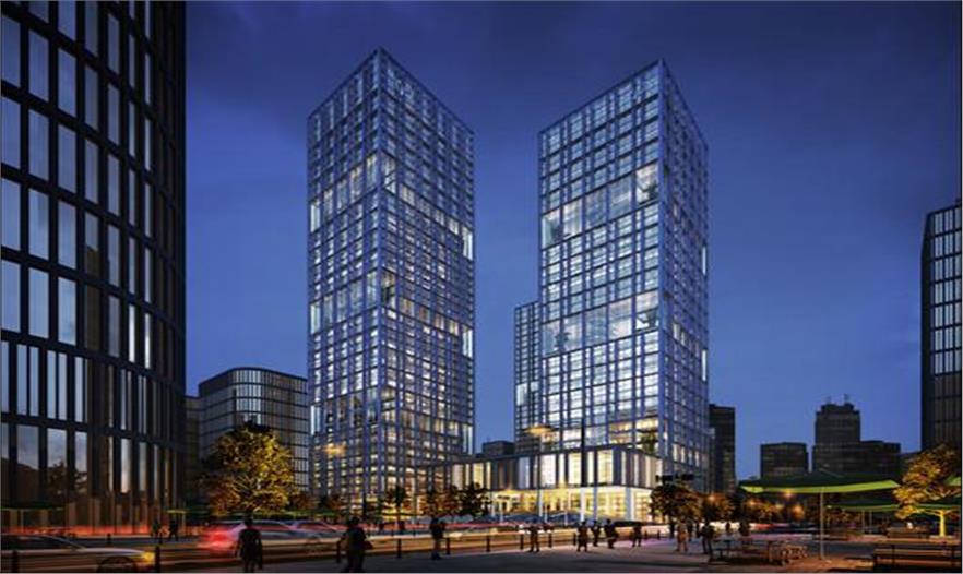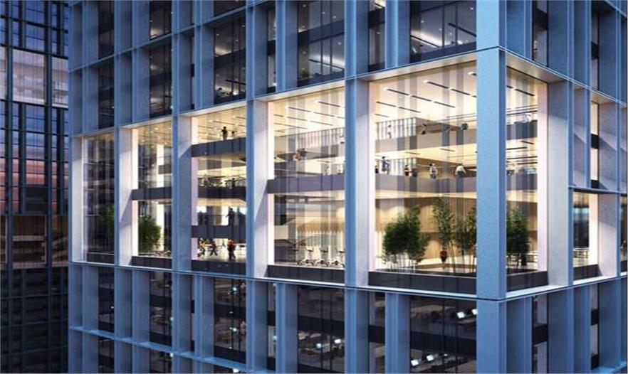 三棟塔樓高度不一,組織形式保證建筑內(nèi)所有辦公空間都擁有不受遮擋的開放視野,同時賦予建筑群令 人難忘的輪廓,刻畫城市獨(dú)一無二的天際線。建筑承重結(jié)構(gòu)以及通風(fēng)窗扇強(qiáng)調(diào)了立面豎向分割肌理,可開啟 窗扇保證了自然通風(fēng)。水平方向視覺表達(dá)上兩層為一個單位,構(gòu)成一個整體尺度得體的結(jié)構(gòu)形式,極富雕塑 感,令人過目難忘。