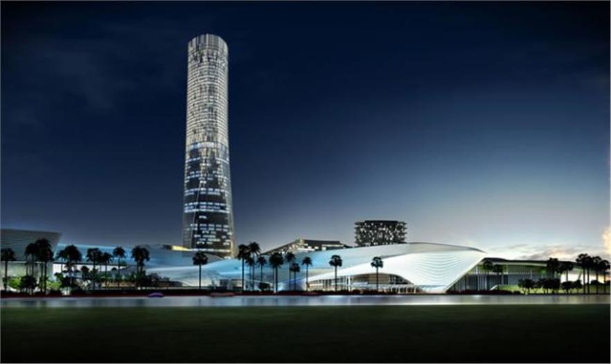 項目由兩棟超高層塔樓和大型購物中心組成:東側(cè)為約470米高,108層的摩天地標(biāo)建筑,規(guī)劃由頂層旅游觀光平臺、五星級酒店、公寓式酒店及超甲級寫字樓組成;西側(cè)為約160米高的純甲級商務(wù)寫字樓??傮w量逾10萬平方米的大型購物中心位于項目南側(cè),將直面橫琴口岸廣場,對接過境及旅游客流。