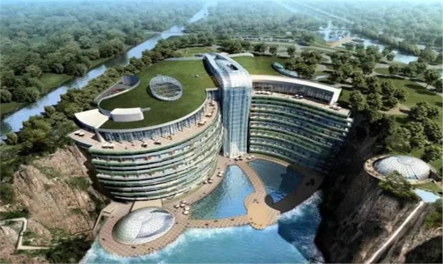 深坑酒店由上海世茂集團投資建設(shè),是世界上首個建設(shè)于坑內(nèi)的五星級酒店,地上三層、地下17層、水下一層,并設(shè)有蹦極等娛樂項目。整個投資在6億元左右,天然室內(nèi)花園+大型景觀瀑布+上有景觀總統(tǒng)房+下有水中情景房。在五星級酒店旁,還將建設(shè)一個樂園,設(shè)計建造一座懸索橋,連接大坑的東西兩側(cè),為攀巖、蹦極、降溪等極限運動提供條件。酒店將于2016年上半年開業(yè),屆時這里又將成為上海一道美麗的風(fēng)景線啦!