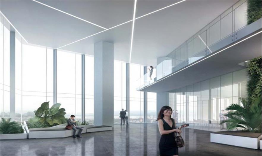 大廈具有幾何造型,三個不同高度的體量,其中會議層從建筑的旁邊突出。突出的部分標識了建筑主要的公共空間,其中“具有最大的透明性,利用平面化的玻璃立面對外界視野沒有任何遮擋。”