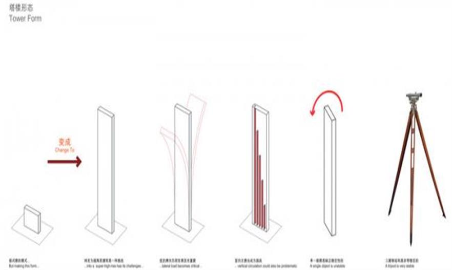 為了減少傳統(tǒng)圓形或長(zhǎng)方形塔樓的側(cè)向壓力,這座 Nexus 大樓體量被分解成了一系列小的體量,通過三腳架和懸挑梁支撐。這種形體引入了自然采光和制冷,具有靈活性并與環(huán)境連接,創(chuàng)造了舒適的工作環(huán)境。隨著塔樓升高,它與周邊環(huán)境也在進(jìn)行互動(dòng),最低的三分之一與旁邊的公園互動(dòng),中間的部分與城市文脈互動(dòng),而頂端與整個(gè)城市和遠(yuǎn)山進(jìn)行互動(dòng)。