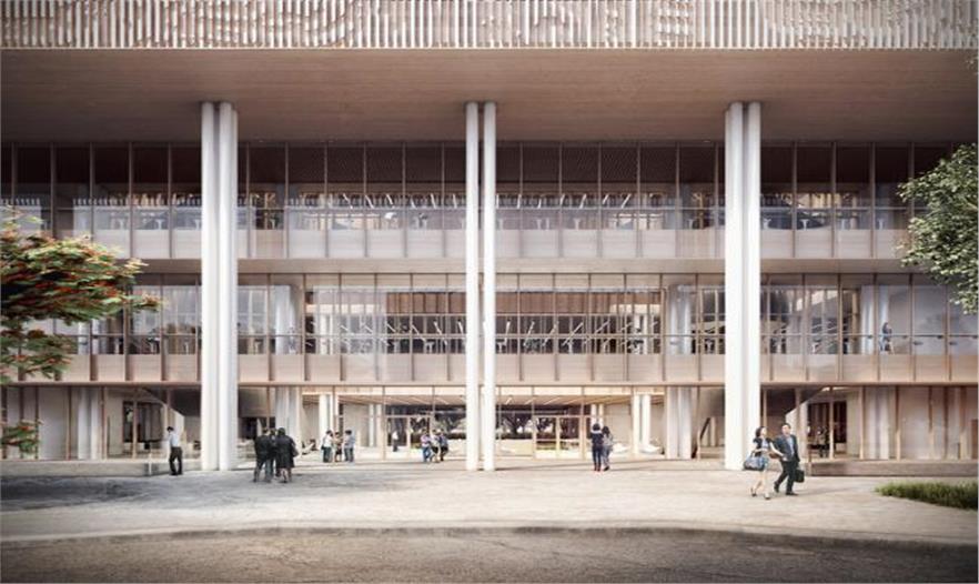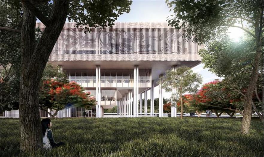 建筑在設計上把每一樓層的周長都進行了逐步擴大,最后形成了一個巨大的樹冠樣式的透明外觀,從外面看就是一種倒臺階的形式,并為中央庭院提供了遮陽功能。