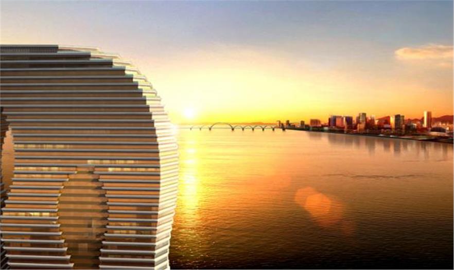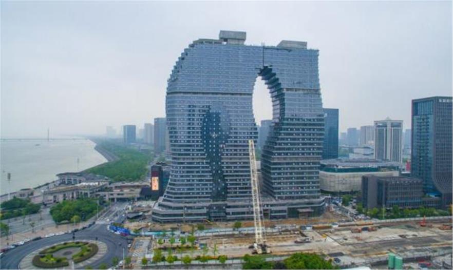 2016年4月25日,杭州錢江邊,又現(xiàn)一座“奇葩建筑”,百來米高的大樓中間分開,好像一條“腿軟的西褲”。附近不少市民笑稱,這幢樓左右“大腿”粗細(xì)相差太多,有點“營養(yǎng)不良”。據(jù)悉,這樁大樓名叫“杭州印”,以著名的西湖三潭印月得名,建筑樓高140余米,共有39層,建成后將成為杭州濱江的地標(biāo)性建筑。