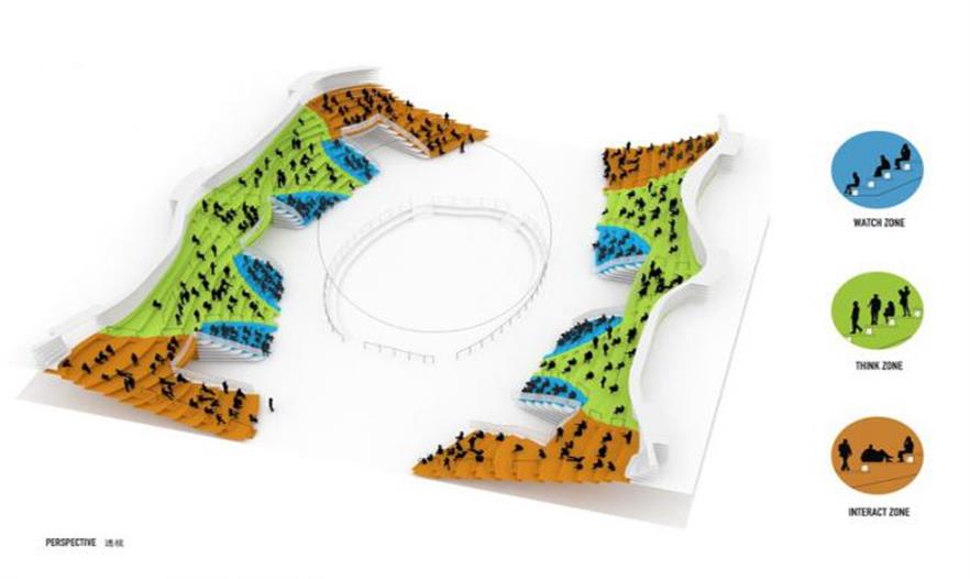 “眼睛位于圖書館的核心部分。它在建筑的中央掏出了一個空間,而書架成為了座椅的部分,在上面可以休息、閱讀或是聊天,上面可以進行攀爬,具有很好的可達性,是一處有機的社交空阿金,”MVRDV 的聯(lián)合創(chuàng)始人 Winy Maas 表示。“禮堂的核心部分可以反射出整個環(huán)境,提供內(nèi)部空間的360度全景視野,成為一個反思與沉思的空間。”