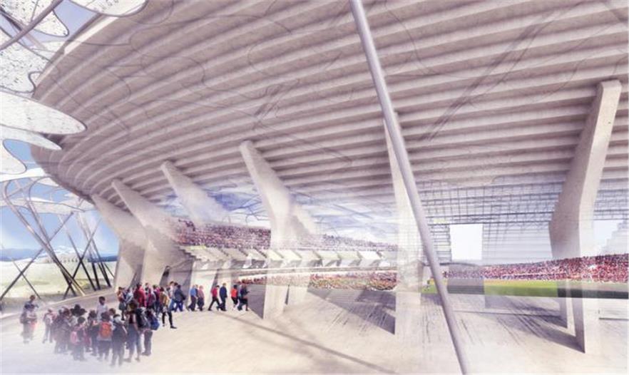 該運(yùn)動(dòng)場(chǎng)的宗旨是“回到原點(diǎn)”,建立起一個(gè)水平的,自然概念的運(yùn)動(dòng)場(chǎng),而不是一個(gè)垂直封閉的體育場(chǎng),要將其建成一個(gè)城市花園。