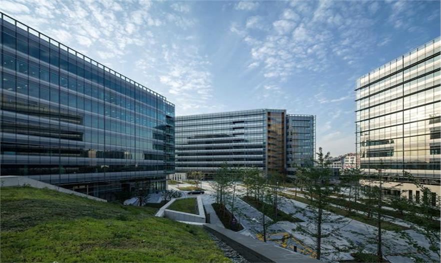 杭州支付寶總部位于天目山路快速干道北側(cè),這里是杭州傳統(tǒng)的商務(wù)區(qū)。利用基地的自然條件,根據(jù)規(guī)劃條件和周邊環(huán)境特點(diǎn),沿街設(shè)置板式高層辦公和公寓,底層為商業(yè),南向開口,界定城市。