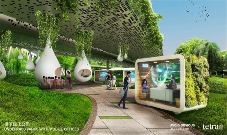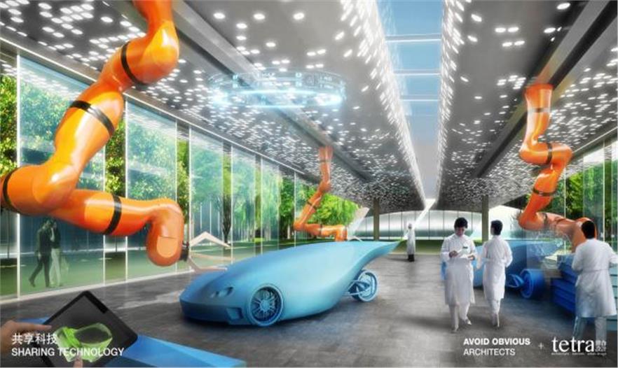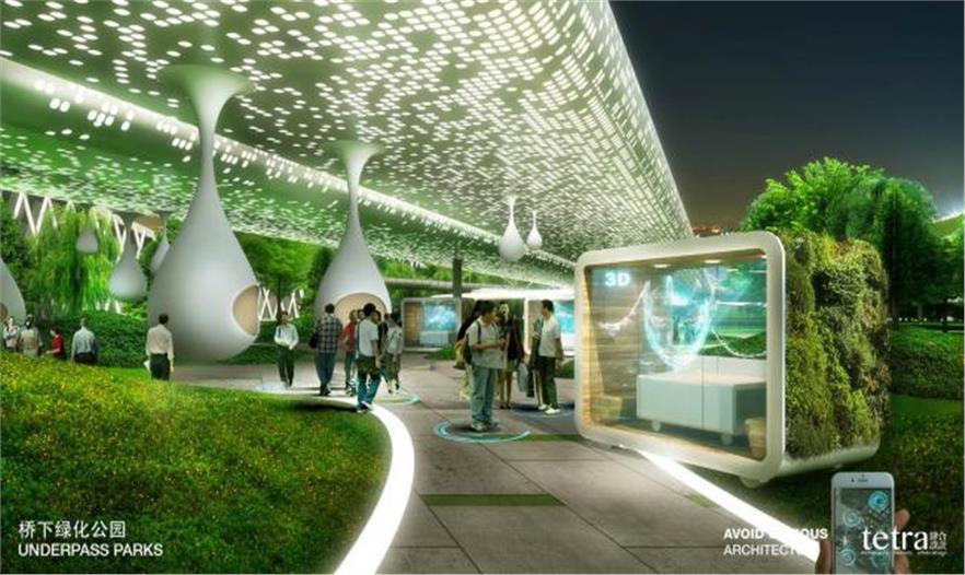 我們的設計意圖不是放棄寶安制造業(yè)城市,而是將設施升級為能共享和連接人,地點和區(qū)域的“綠色制造業(yè)城市”。這種可持續(xù)城市將貫徹新的“分享經濟”,運用設備透明工廠,無人機港口交貨,開放實驗平臺,移動辦公室和自然設施等設施來共享。新的G107將成為一個生活,工作和娛樂的地方。