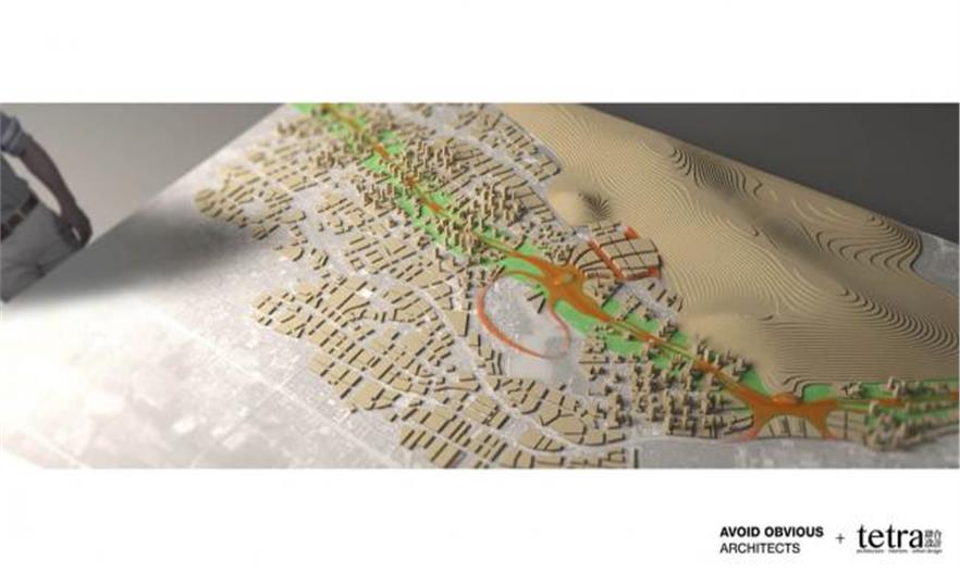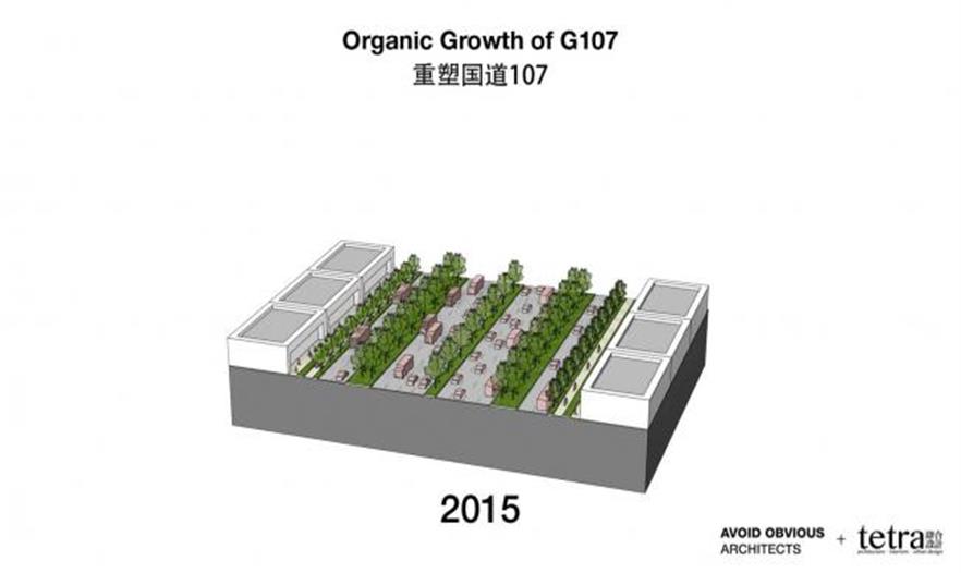 目前30千米長,12車道的G107高速公路被看作高效生產和交通的阻礙,也切斷了西部濱水開發(fā)區(qū)和東部綿延山脈的聯(lián)系。AOA 和 TETRA的方案重新連接了這兩個自然區(qū)域,在G107干線之間創(chuàng)造出城市景觀。