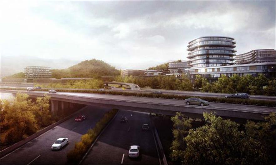 三個(gè)主要景觀節(jié)點(diǎn)打造出一個(gè)核心景觀美化方案( “四溪一谷”或“綠色山谷”),將兩個(gè)組團(tuán)隔開(kāi),同時(shí)形成有效的遮擋和室外空間,東邊建筑的陽(yáng)臺(tái)就集中體現(xiàn)了這一特色。公司總部建筑矗立在園區(qū)外部空間的中心,在這里能俯瞰這個(gè)42公頃的多功能園區(qū)的各個(gè)角落。設(shè)計(jì)同時(shí)也考慮到了該公司的長(zhǎng)遠(yuǎn)發(fā)展,為環(huán)境所做的努力提升了這個(gè)面向未來(lái)的旗艦園區(qū)的可持續(xù),包括低碳材料、自然通風(fēng)、地下水循環(huán)和太陽(yáng)能等的應(yīng)用。