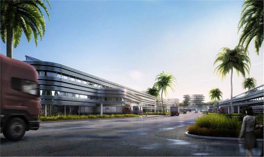 設(shè)計(jì)團(tuán)隊(duì)力求在狹窄地帶設(shè)計(jì)一個(gè)高密度的倉(cāng)庫(kù)區(qū),而且他們做到了。通過(guò)將西部的緩坡地帶融入到設(shè)計(jì)中,團(tuán)隊(duì)巧妙地利用有限的土地創(chuàng)造出兩層存儲(chǔ)和裝載空間。南部的海南高速公路給該園區(qū)東西入口提供了便捷的通道,西入口成為運(yùn)輸車輛進(jìn)入工業(yè)園區(qū)的主要通道。