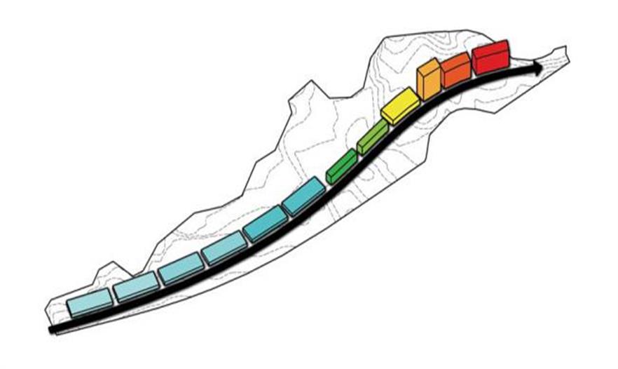 羅牛山作為海南一個(gè)非常受歡迎的公司,該設(shè)計(jì)充分反映了公司的目標(biāo)——集中安全和穩(wěn)定的食品加工產(chǎn)業(yè)鏈,同時(shí)為公司未來(lái)的發(fā)展創(chuàng)造一個(gè)新的發(fā)展模式。根據(jù)公司口號(hào)“從田間到廚房”的啟發(fā),該項(xiàng)目設(shè)計(jì)涵蓋了倉(cāng)庫(kù)、辦公室、服務(wù)部門、展覽中心、旅游中心和公司總部,將產(chǎn)業(yè)流程和全面的管理功能集中在了一個(gè)1.7km×0.4km的獨(dú)立地塊內(nèi)。