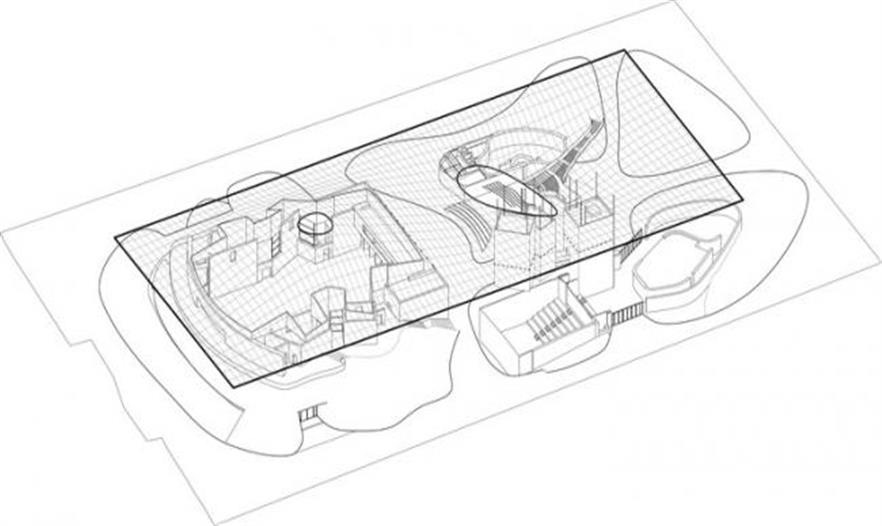 整個(gè)建筑的本身是富有表現(xiàn)力的,進(jìn)出方便,在建筑的斜坡下面建造了一個(gè)樓梯,從室內(nèi)廣場一直通向屋頂,屋頂是個(gè)開放的,富有特色的休閑公共空間,在這里可以縱覽周圍的美麗景色。