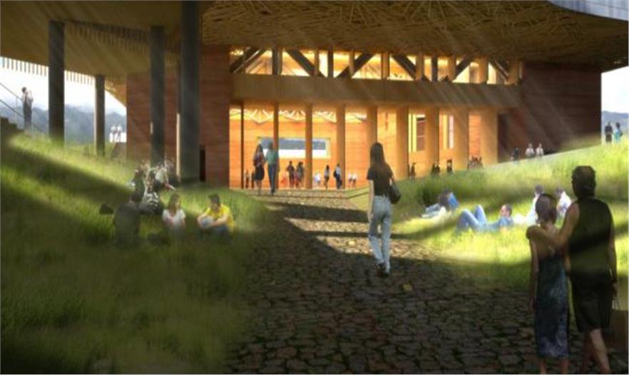 在設(shè)計(jì)表演藝術(shù)中心過程中,朱锫建筑設(shè)計(jì)事務(wù)所深受這里的自然景觀和氣候多變的影響,采用大型華蓋屋頂和流暢的建筑形式,讓用戶能夠充分體會(huì)到建筑的壯觀。