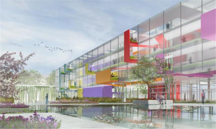 “項目開發(fā)了6個區(qū)域,分別對應(yīng)6種色彩(紅、橙、黃、青、粉、紫)。場地通過水平與豎向表面(比如流線區(qū)域,景觀設(shè)計之中,幕墻設(shè)計之中,等等)展現(xiàn)出了豐富的內(nèi)容變幻。在建筑不同高度顏色進(jìn)行了一致的色彩延伸,但是一些特定的樓板間的色彩是多樣。建筑師在媒體中表示。