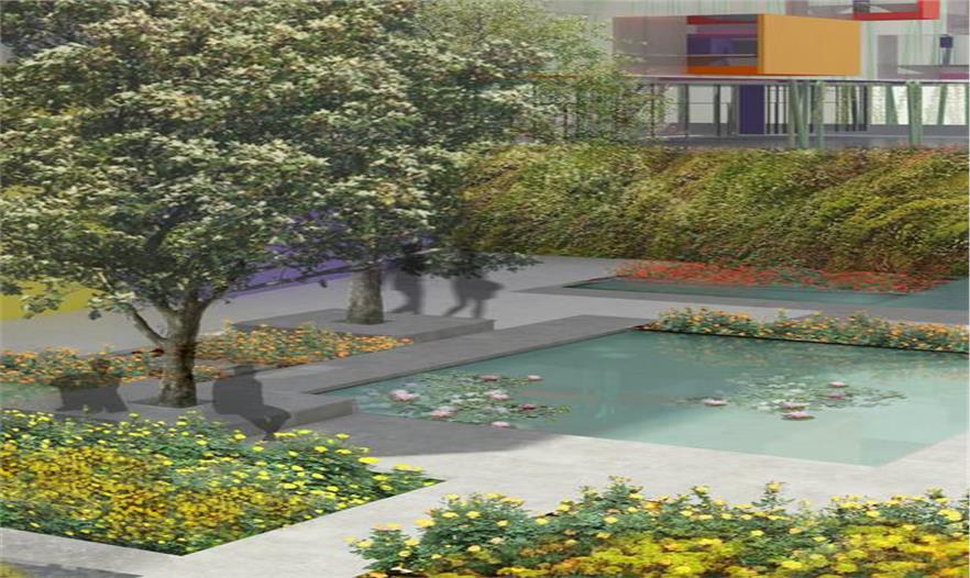 每個區(qū)域的花床里都有全年的開花,它們覆蓋了園林與建筑周圍的半公共露臺。