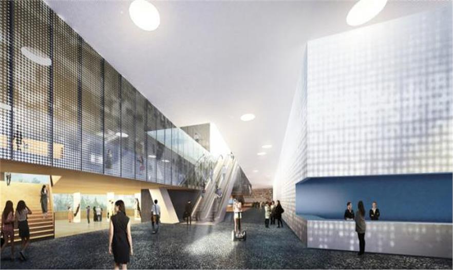 建筑下部的體量被稱為“藝術(shù)社區(qū)”,在這里,藝術(shù)與公眾生活、文化教育緊密結(jié)合。城市街道般的藝術(shù)走廊將“黑盒子”裝置劇場、市民與藝術(shù)展廳、藝術(shù)品商店、報告廳、圖書館、手工坊等為市民提供服務(wù)的藝術(shù)空間串聯(lián)起來。