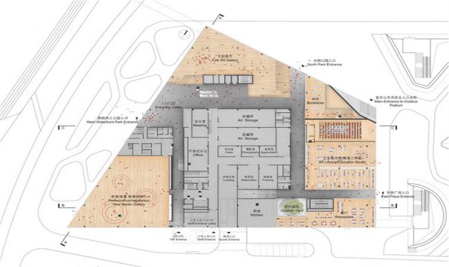 功能:展廳、多功能報告廳、藝術(shù)圖書館、咖啡廳、餐廳、藝術(shù)品收藏庫、行政及研究辦公室