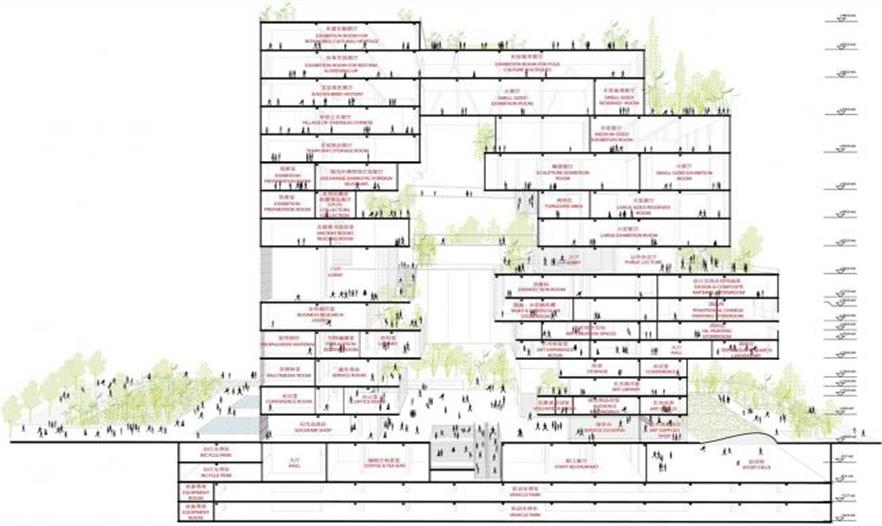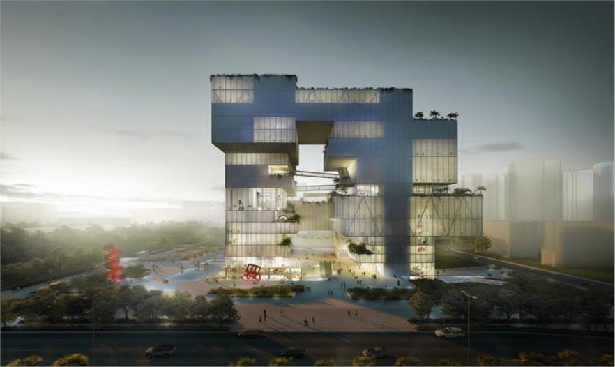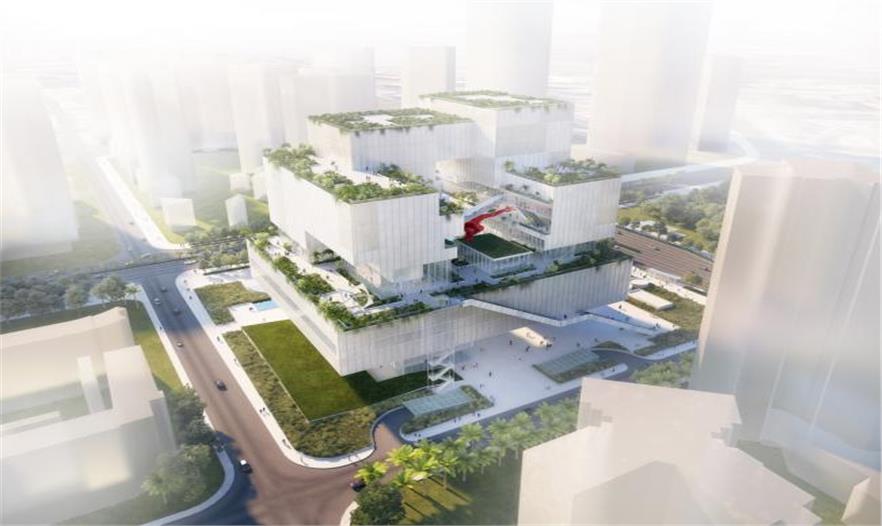 該項目位于深圳寶安區(qū),其中文化中心將會為三個主要功能領(lǐng)域提供超過8萬平方米的空間:包括博物館,藝術(shù)畫廊和展覽廳。地下層為“城市大廳”,作為歡迎游客進入建筑的通道,并同時提供零售設(shè)施和地鐵連接線。