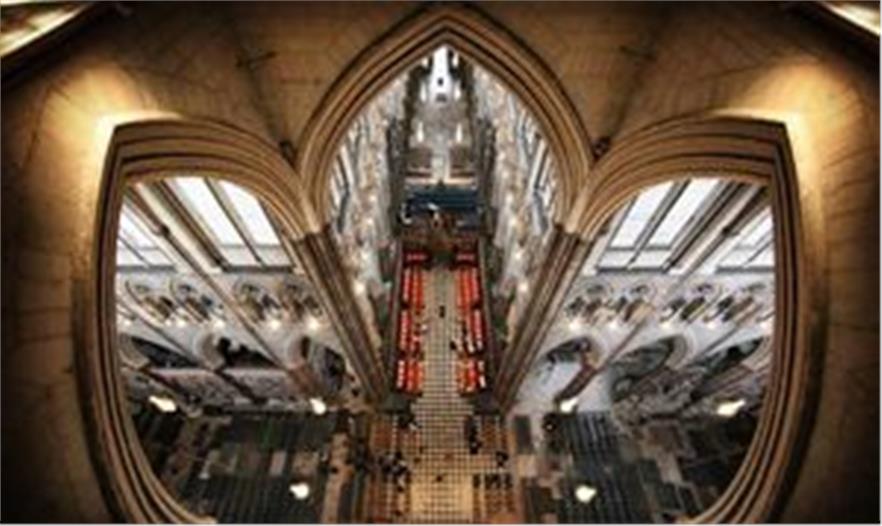 圖∶從威斯敏斯特教堂的燈塔能看見(jiàn)教堂正廳、人行橫道和十字型翼部。