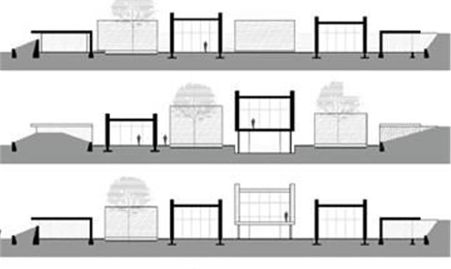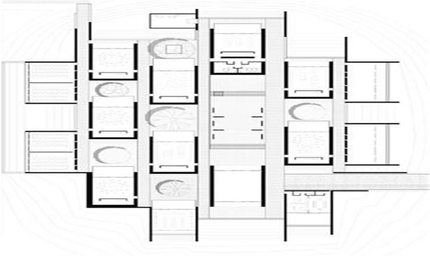 第二種建筑與第一種的區(qū)別在于,它們是修筑在平地而不是坡地上,并且除了美術(shù)館和大禮堂(南北朝向)之外都是朝北的。這不僅有助于形成一個(gè)具有不均衡的有機(jī)系統(tǒng)的建筑特性,加強(qiáng)墻壁和庭院的豐富性,而且還構(gòu)成了優(yōu)秀的建筑體系,從而在哈瓦卡城的極端氣候中創(chuàng)造良好的小環(huán)境,同時(shí)還為教室提供具有良好的隔音性能。